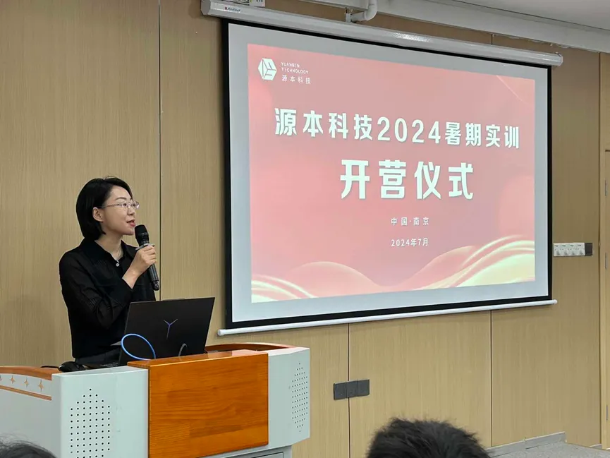 开营仪式上,总经理唐佩女士首先发表热情洋溢的致辞,她强调了实训营的重要意义,并鼓励学生们珍惜这次宝贵的学习机会,积极投入,勇于探索。她表示:“源本科技一直致力于科技创新与人才培养,我们希望通过暑期实训营,不仅能让大家学到专业知识,更重要的是激发大家的创新思维和团队协作精神。”